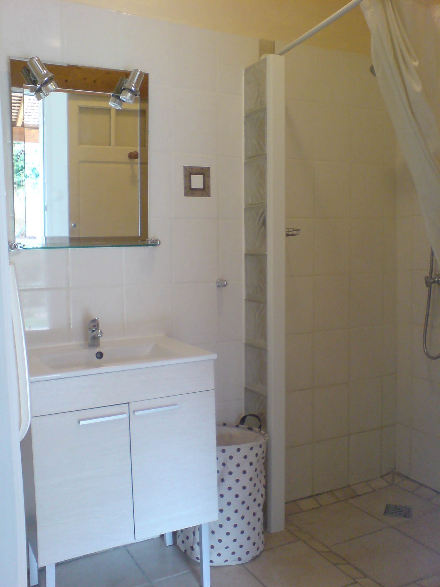 A ce même rez de chaussée vous avez la salle d'eau avec WC, un coin salon et documentations pour agrémenter votre séjour. Au premier étage une première chambre avec 2 lits  90 cm, puis une seconde avec un lit grand confort (lit bb) et une mezzanine avec un lit 90  et son bureau.